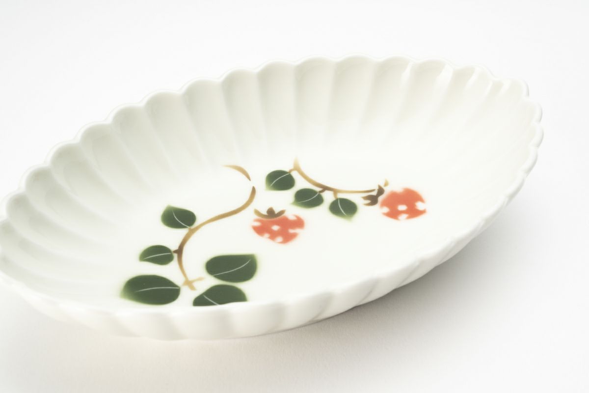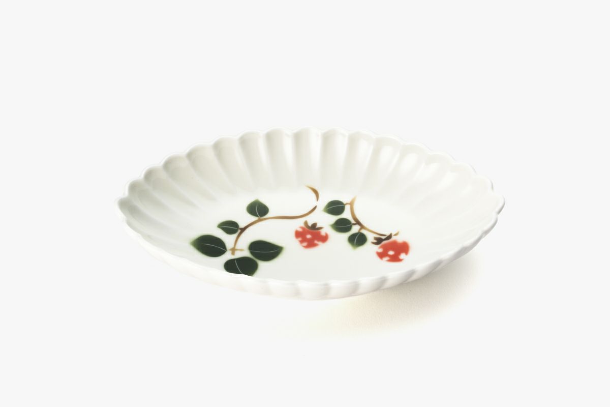 菊割のかたちに、苺模様が奏でているように描かれているので、食卓に彩りと和らぎを与えてくれます。