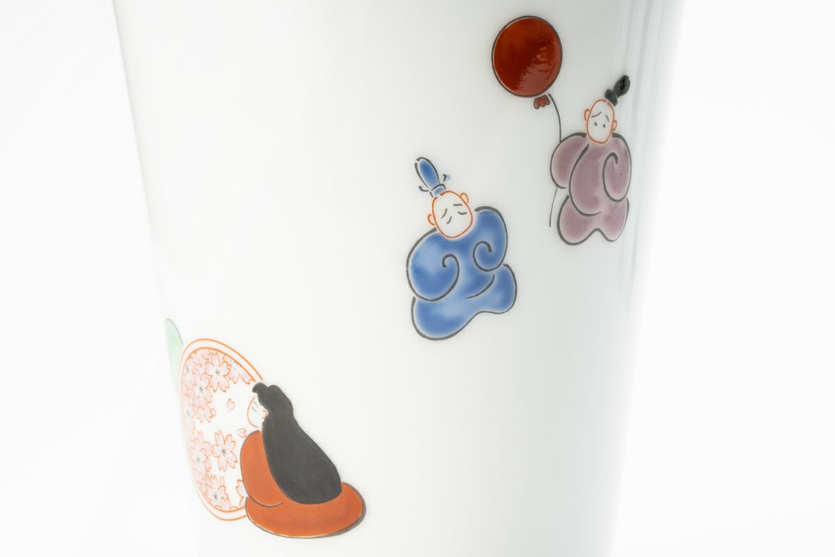 丸紋に寄り添う愛らしい六歌仙たち。「ほっとひと息がつける」デザインと新形状のカタチです。