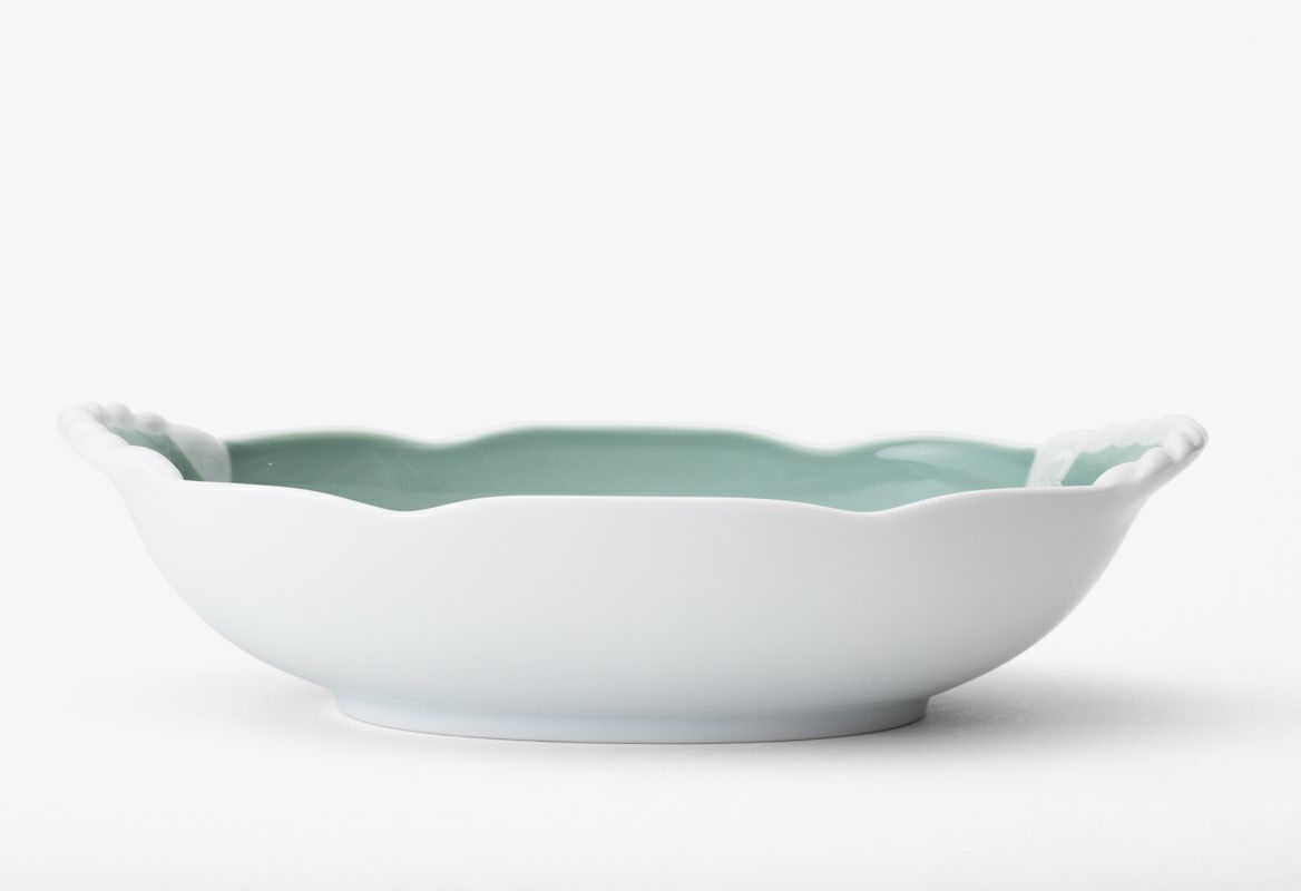 上質な陶石を1350度の高温度で焼成する事により生まれる透けるような真白な生地に、敢えて白百合の存在感のある白を重ね合わせた清楚な姿は、まさに奥ゆかしい日本の美感です。