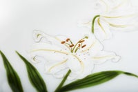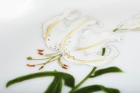 白百合の花言葉は「純潔、無垢」。何よりもこだわったのは、上品な「WHITE」です。上質な陶石を1350度の高温度で焼成する事により生まれる透けるような真白な磁器肌。幸せの大輪を咲かせたような優雅な白百合の花びらは、伝統的な技法によって特別に調合したいくつもの白い上絵具で描かれ、モダンなニュアンスをもつ柔らかな白のハーモニーが魅力です。愛らしいフリルのかたちにのせて優しい風に揺らぐ清楚な白百合の姿はまるでレリーフ。使う度に幸せに包まれるコレクションです。