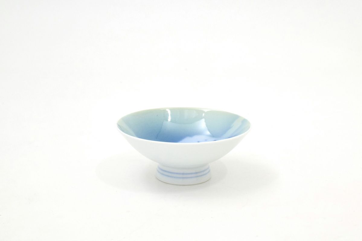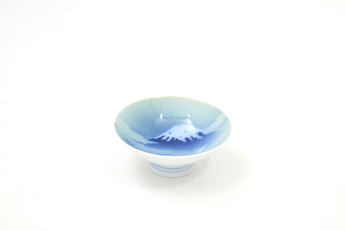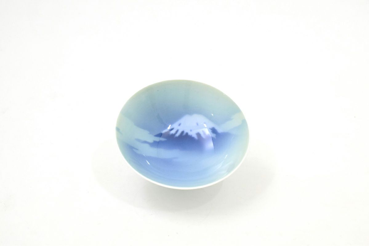 代表的な富士の意匠を登り窯で焚かれた作品。柔らかなエアログラフと優しい青磁の表情をお楽しみいただけます。