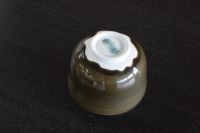 24谷窯深茶灰釉 手造抹茶碗(ろくろ士名入り)