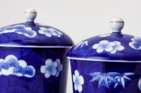 染付技法で松竹梅を描き、きれいな濃淡が、使うたびにホッとさせてくれます。蓋がついていますので冷めにくく、毎日美味しいお茶が楽しめます。