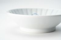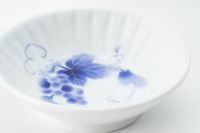 用の美を追求した現代的な形姿に、百年前の下絵技法「エアログラフ」によるブルーのグラデーションが真白な磁器肌に染め込まれ、現代のブルー&ホワイトとして再現されています。白磁の間に、調子を取る様に伸びる「つる」を手描きで入れているのも、一つ一つの表情の違いが器に温かで気韻ある印象を与える為です。熟練した職人の手わざによる現代のブルー&ホワイトには、明治期以来頑なに変わる事なく伝承してきた工芸品としての魅力が備わっています。