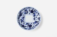 この作品は、明代の唐草文様のダイナミックな美しさを探究した作品です。踊るようにリズミカルな唐草は、しっかりと呉須をふくんだ筆の勢いにより生まれます。 たっぷり呉須を吸収した生地は、釉薬を少し弾き渋い光を呈しています。