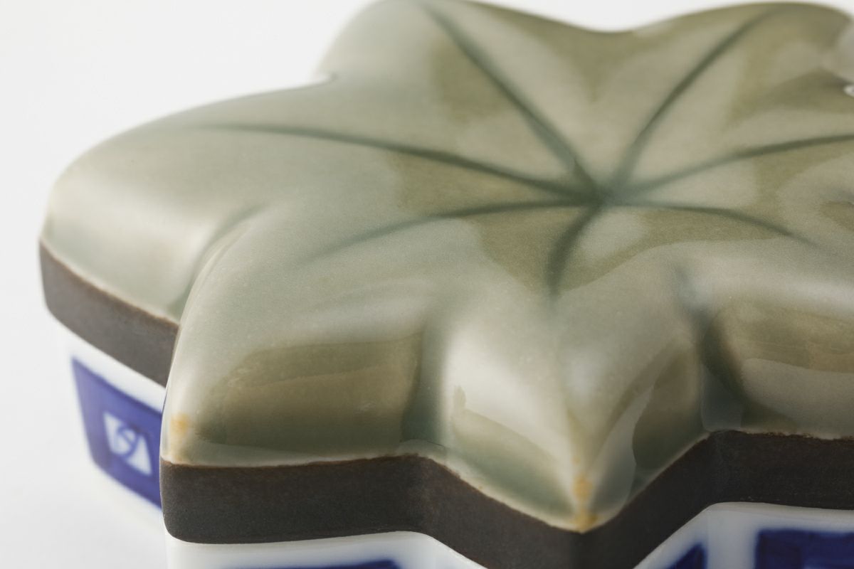 染付渕地紋 楓彫刻小蓋物