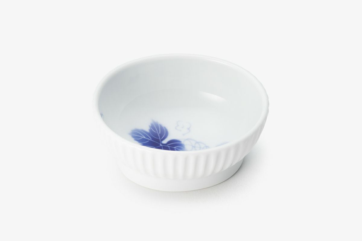 生地に顔料が吸収されやすいことから、淡い色で描くのは難しいとされる染付技法を用いたコレクション。精緻な線描きや濃み(だみ)による筆跡を残した塗りなど、染付の魅力を感じていただける器です。