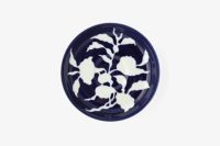 明時代の「瑠璃地草花折枝白抜文皿」を意識したデザインを現代に復刻。現代の暮らしにも馴染むモダンな意匠が大変人気です。