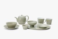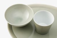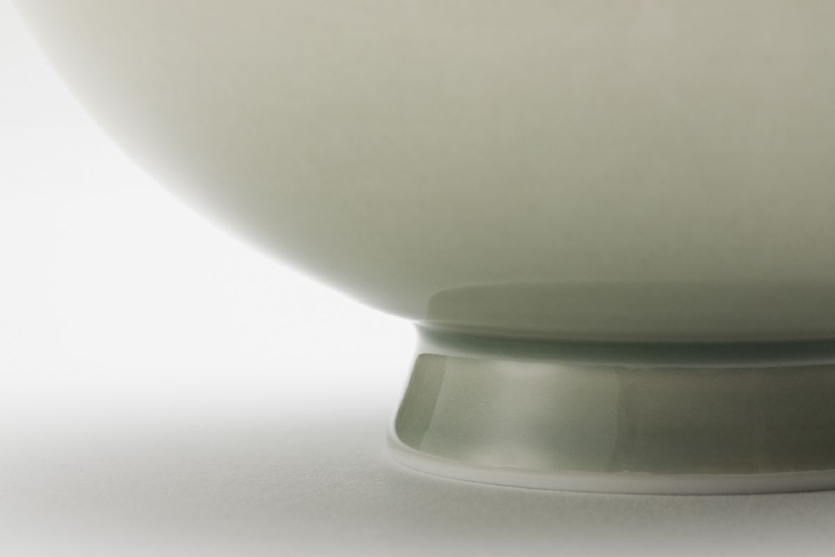 やきものの最高峰、中国・宋の時代の青磁のように深みのある青緑色。深川製磁が年に一度、谷窯と呼ばれる自社の登り窯で焼き上げる青磁の色を再現したいという思いから誕生しました。