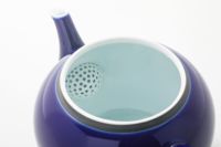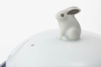 熟練の絵具職人が調合した新たな色彩の瑠璃色は、深川らしさを感じる澄み切った色が目を引きます。 デザインだけではなく使いやすさをも追求。美味しい日本茶や紅茶を楽しんでいただけるよう、あと引きしにくい特別な注ぎ口や職人の手彫りによる磁器製の茶こしを備えています。つまみ部分のうさぎの彫刻も丁寧に職人の手で仕上げられ、目と耳は表情豊かに下絵で絵付けています。