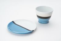 もっと自由にうつわを愉しむための、色とカタチ。 大人気、TEWAZAシリーズに新しい形のお皿「ドルチェ」が仲間入りしました。 中央には「鉄錆色」のアクセントがパッと目をひき、釉薬の「かけわけ」と呼ばれる伝統手法で、美しく鮮やかなブルーと白磁のコントラストが、食卓をエレガントに彩ります。