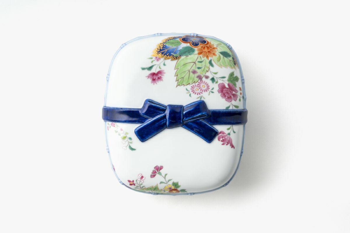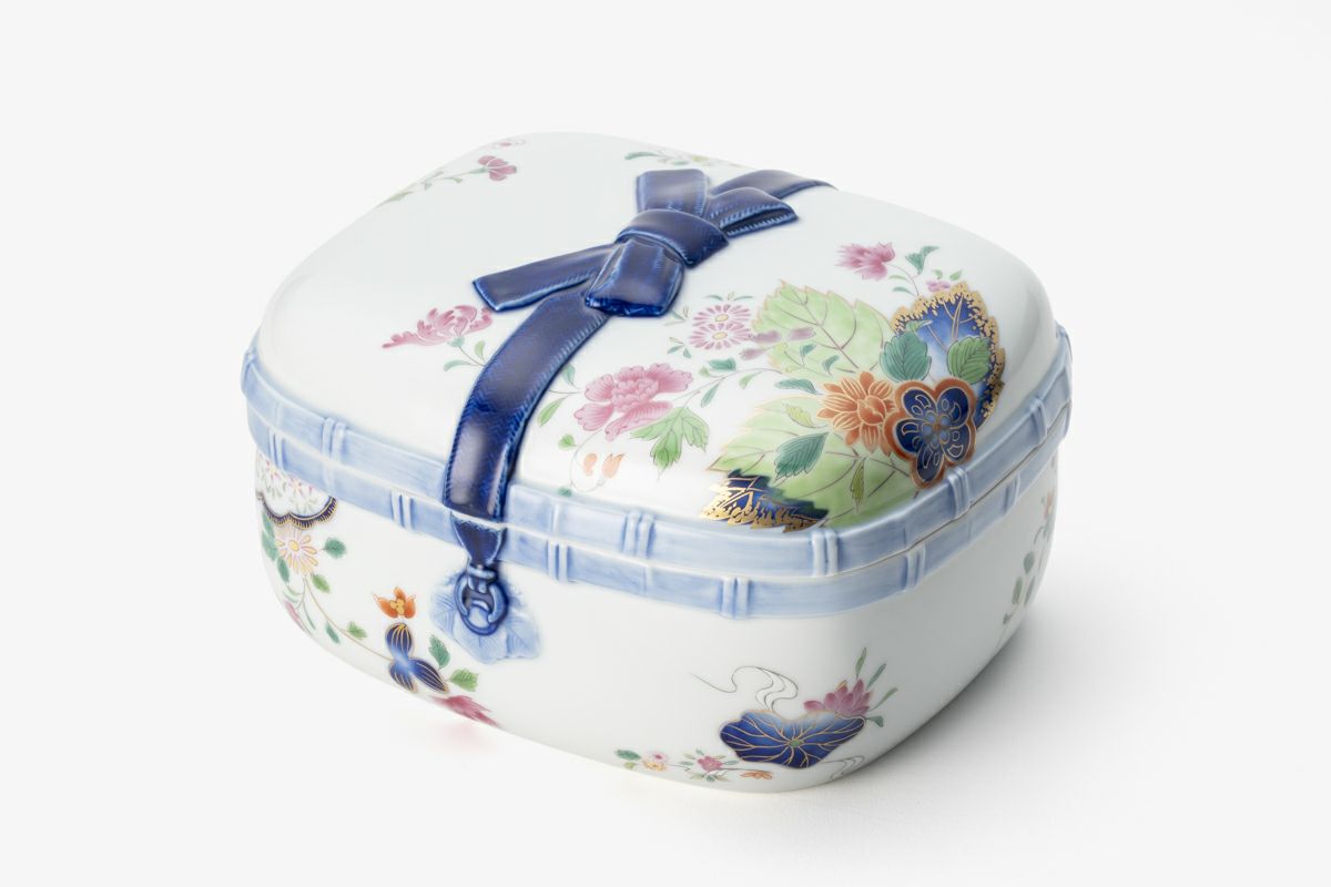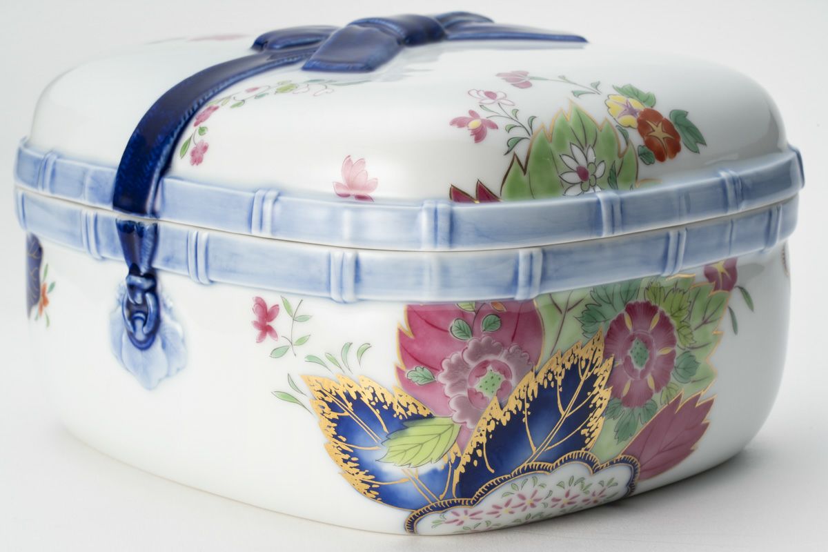 染錦絢爛草花絵 陶箱
