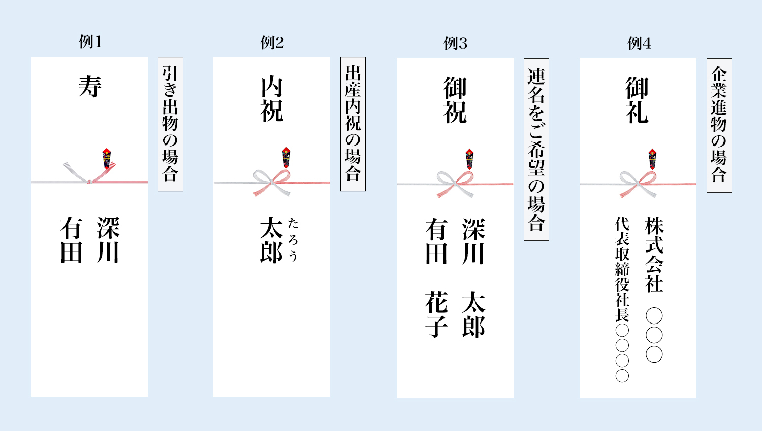 【用途別の熨斗・表書き例】