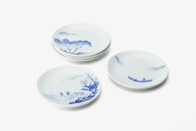 食事の取り皿としてはもちろん、青磁の茶器などと合わせて和菓子をいただくのに使っています。温かみのある白い地肌にさり気ない絵柄で、どんな食材にも合わせやすいです。穏やかな風景と人の営みが描かれた山水画に気持ちが和みます。普段の食事も特別な気分になり大変満足しております。