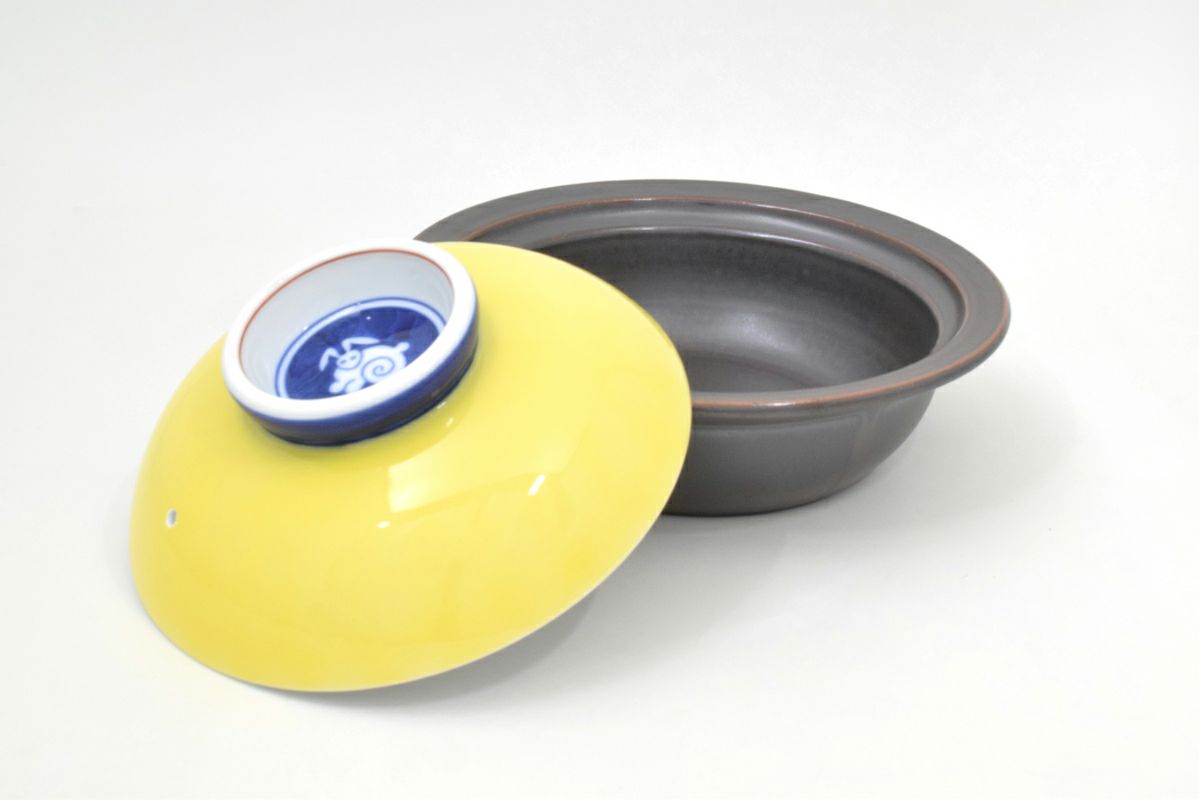 染錦割模様 手造飯碗