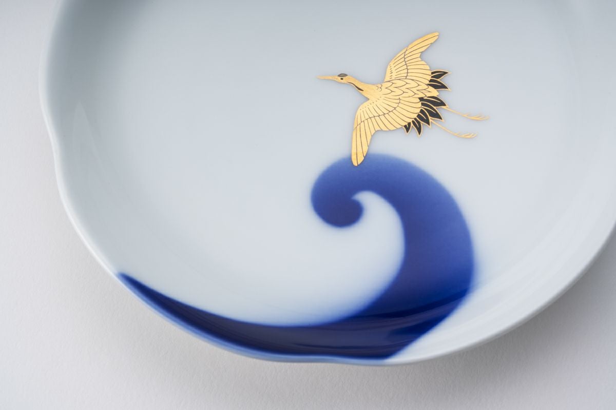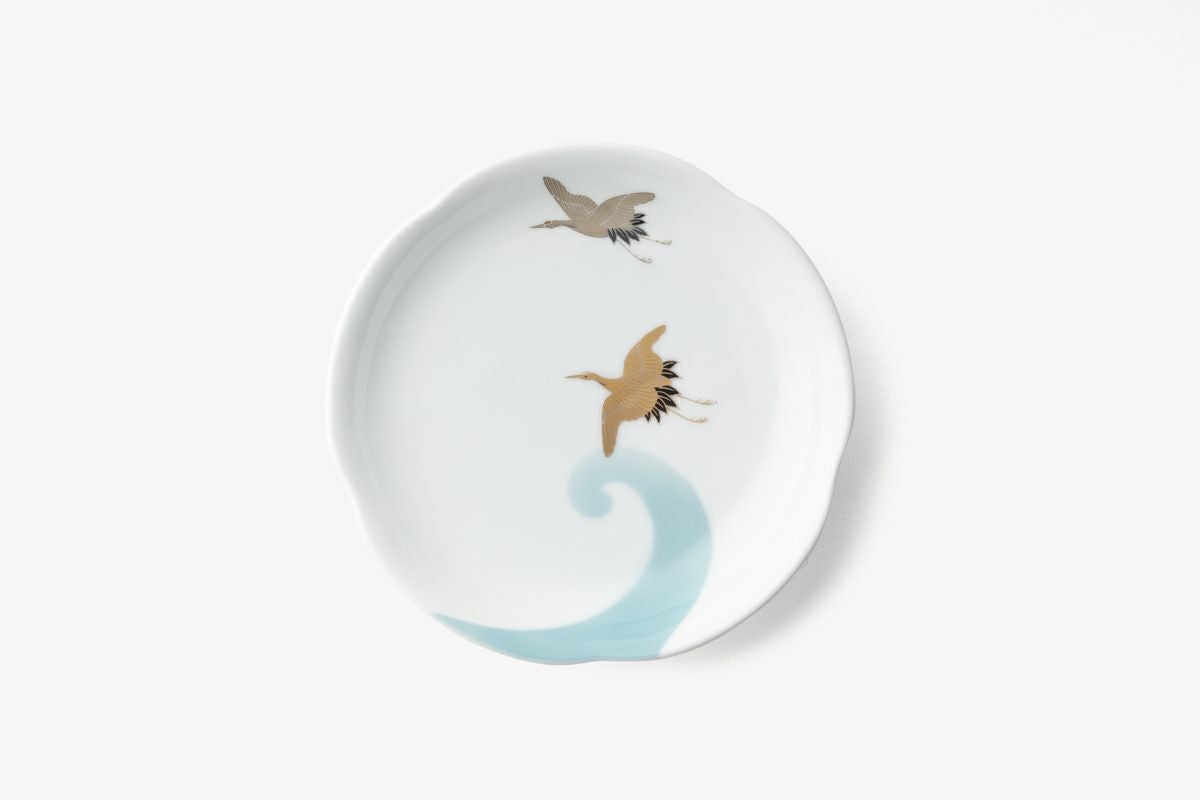 白金波鶴紋あさぎ 5寸皿
