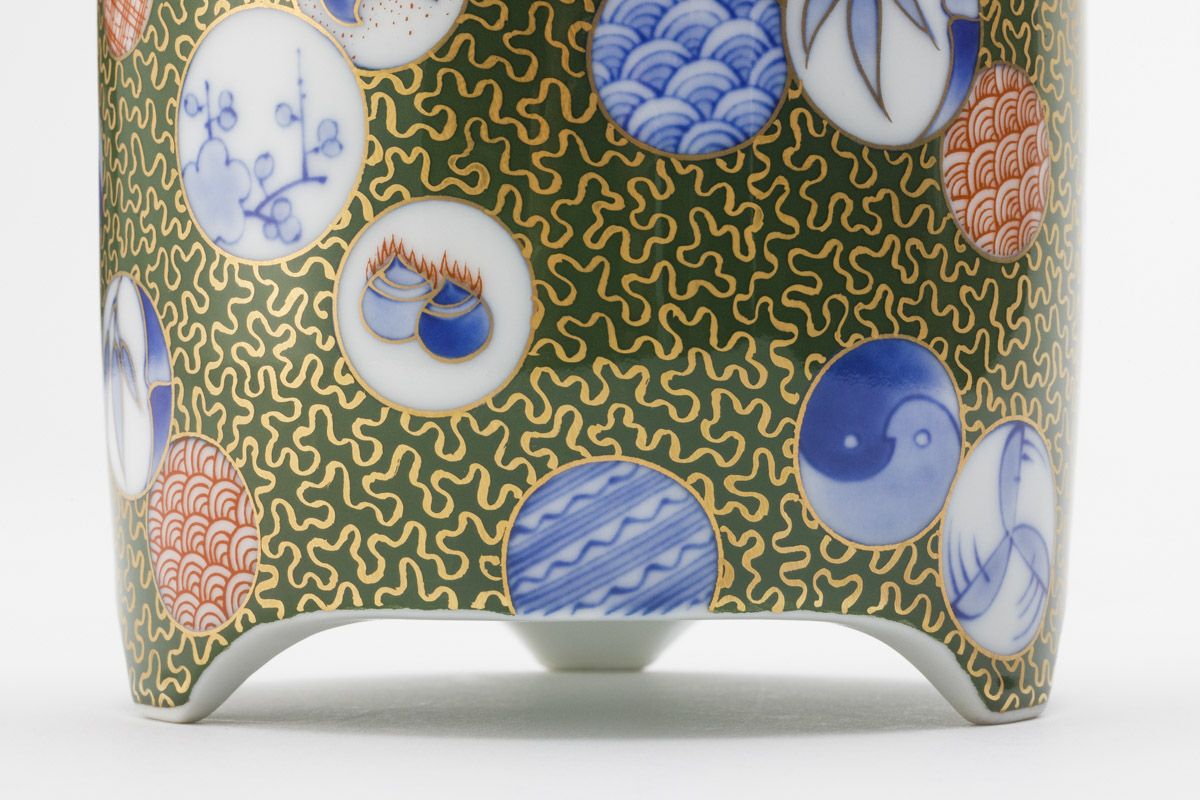 染錦丸紋外緑 香炉