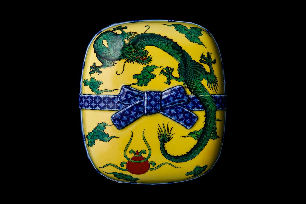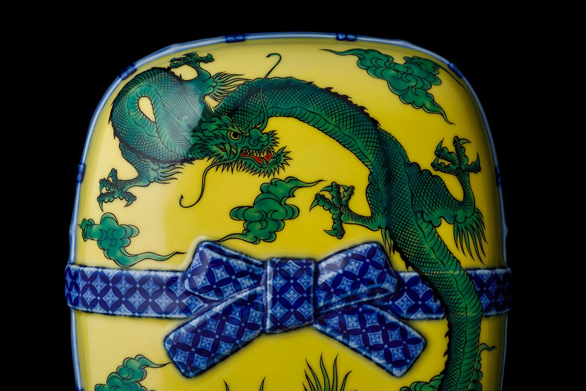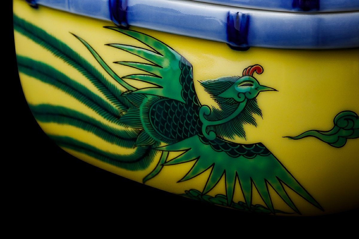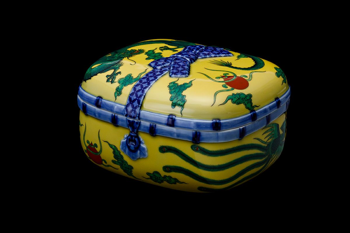 竜鳳凰錦手黄地 陶箱