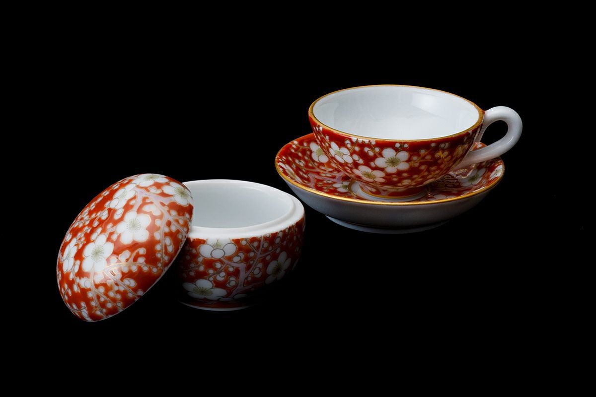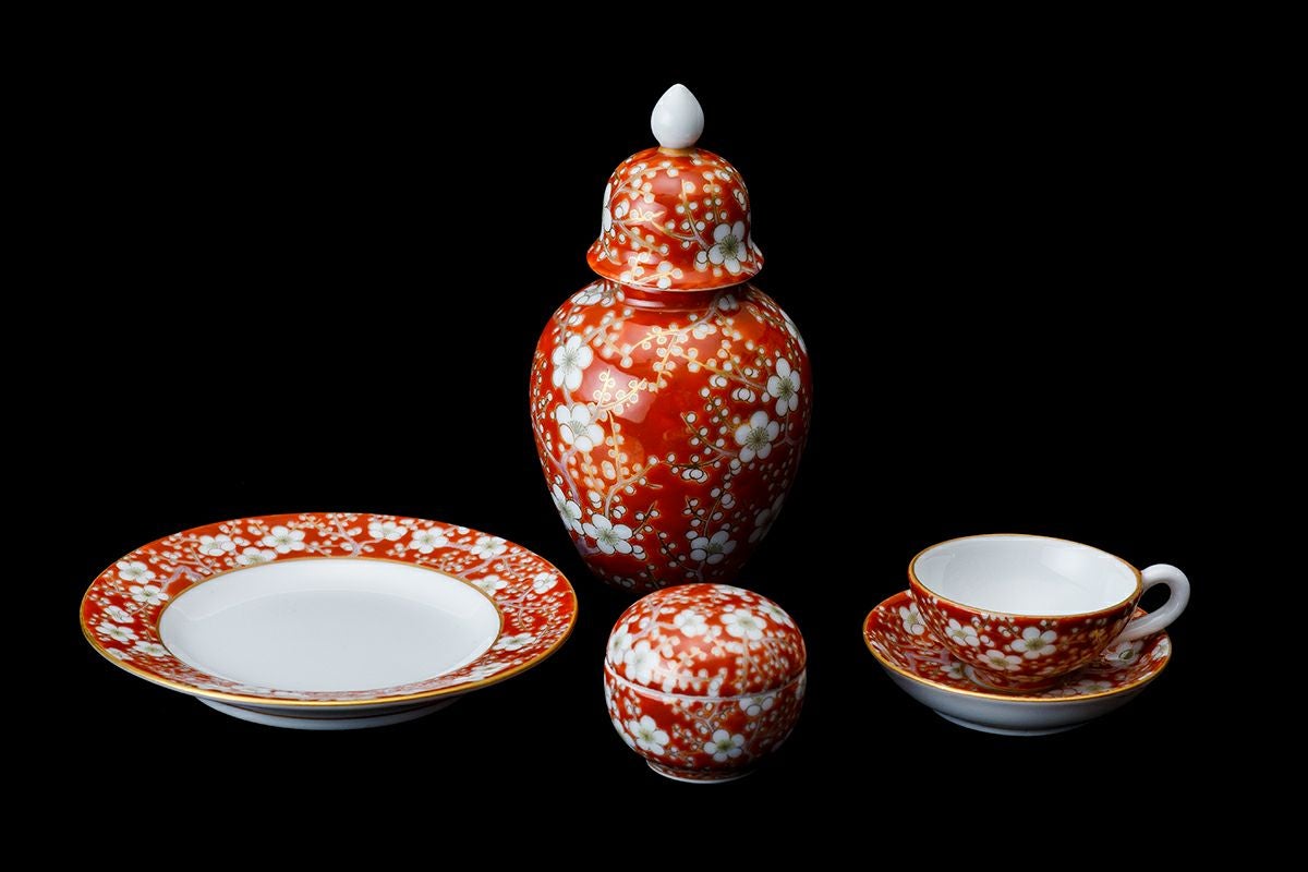 寿赤絵 梅型6号鉢