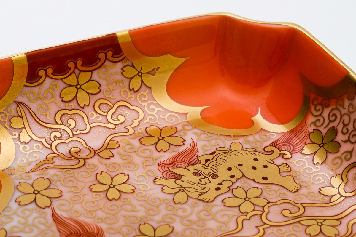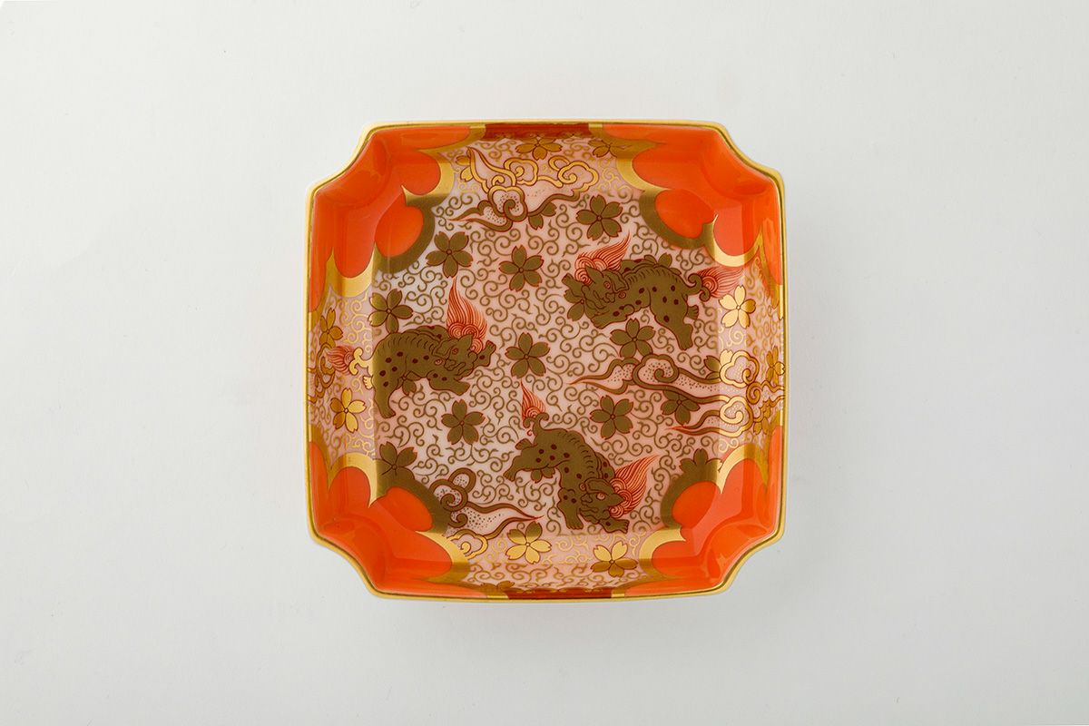 獅子唐草紋 角4号飾皿