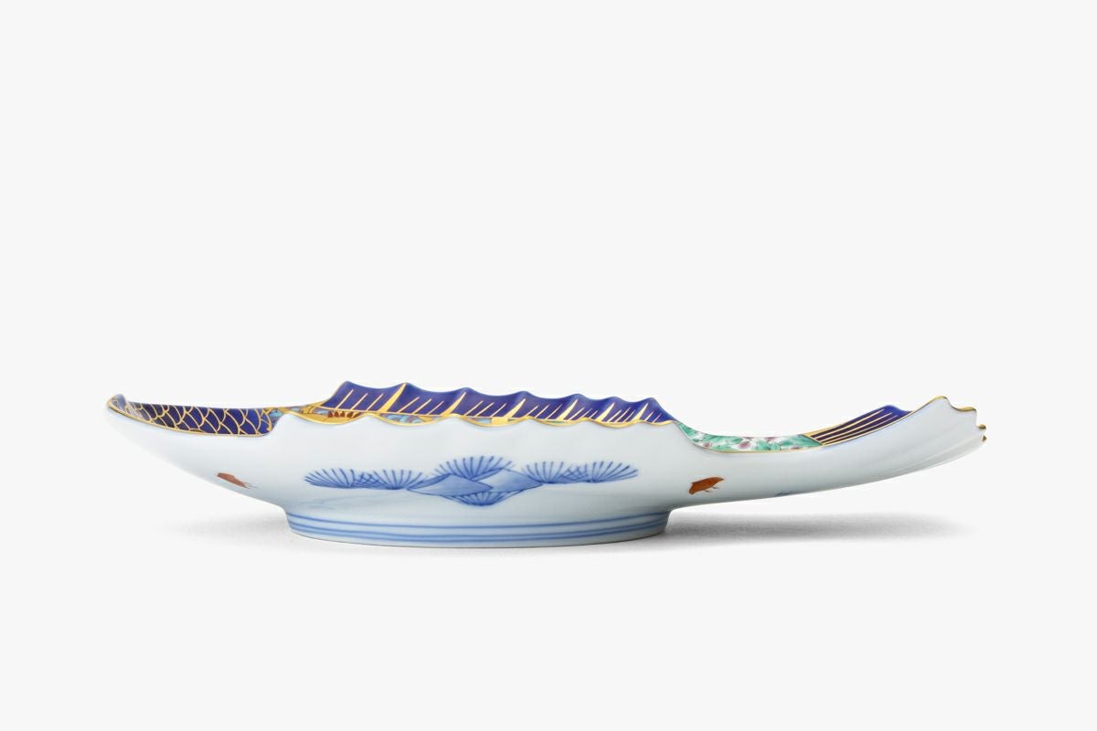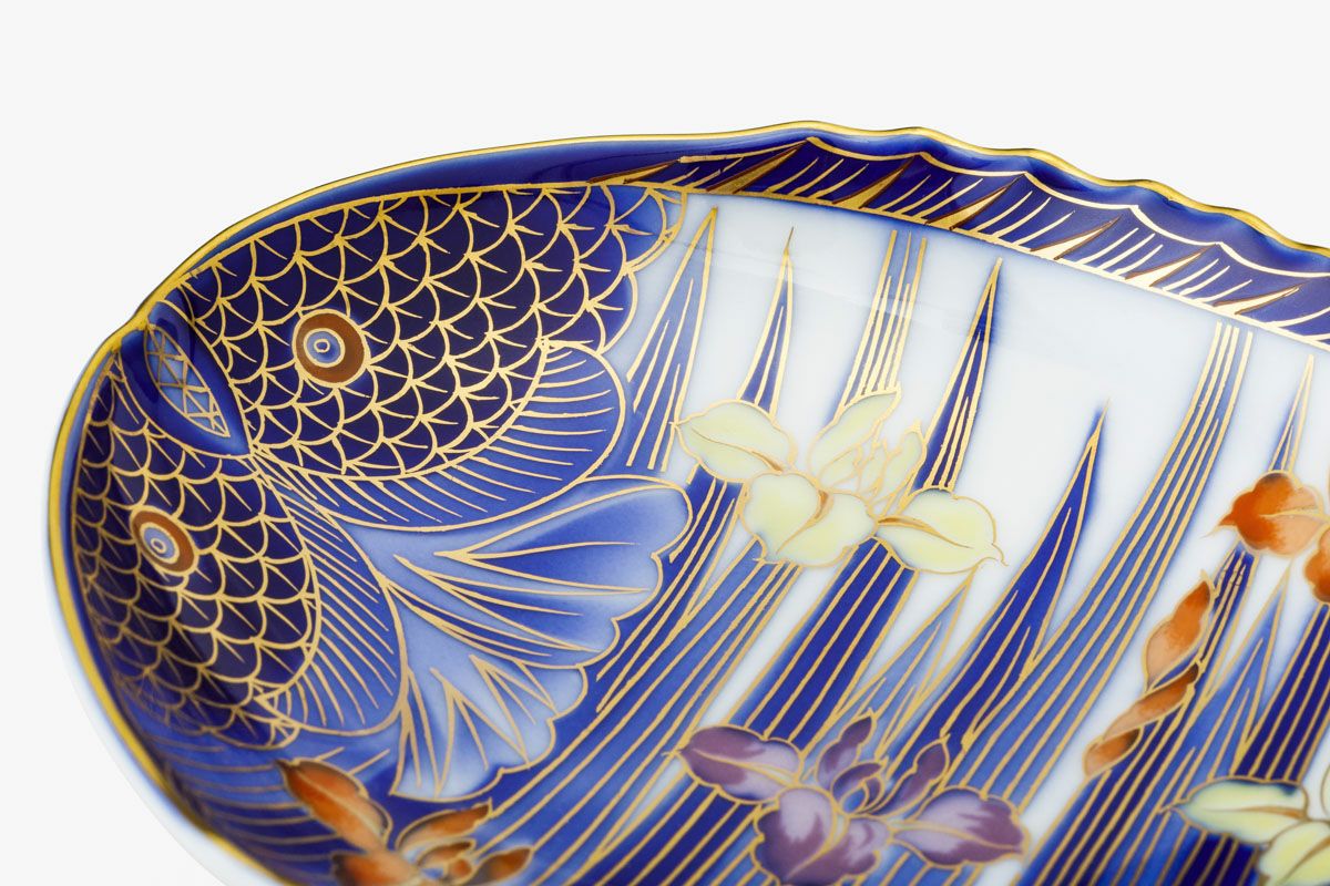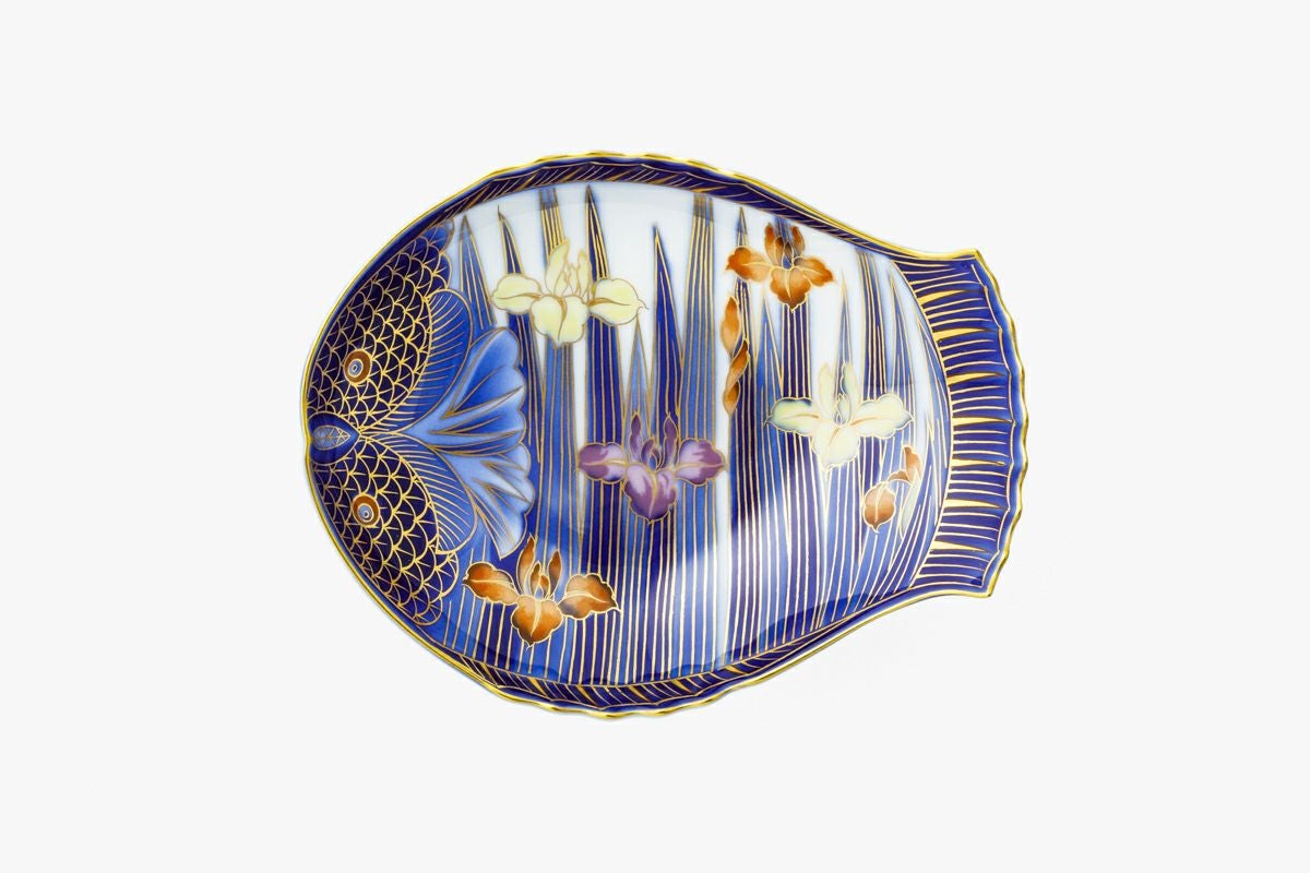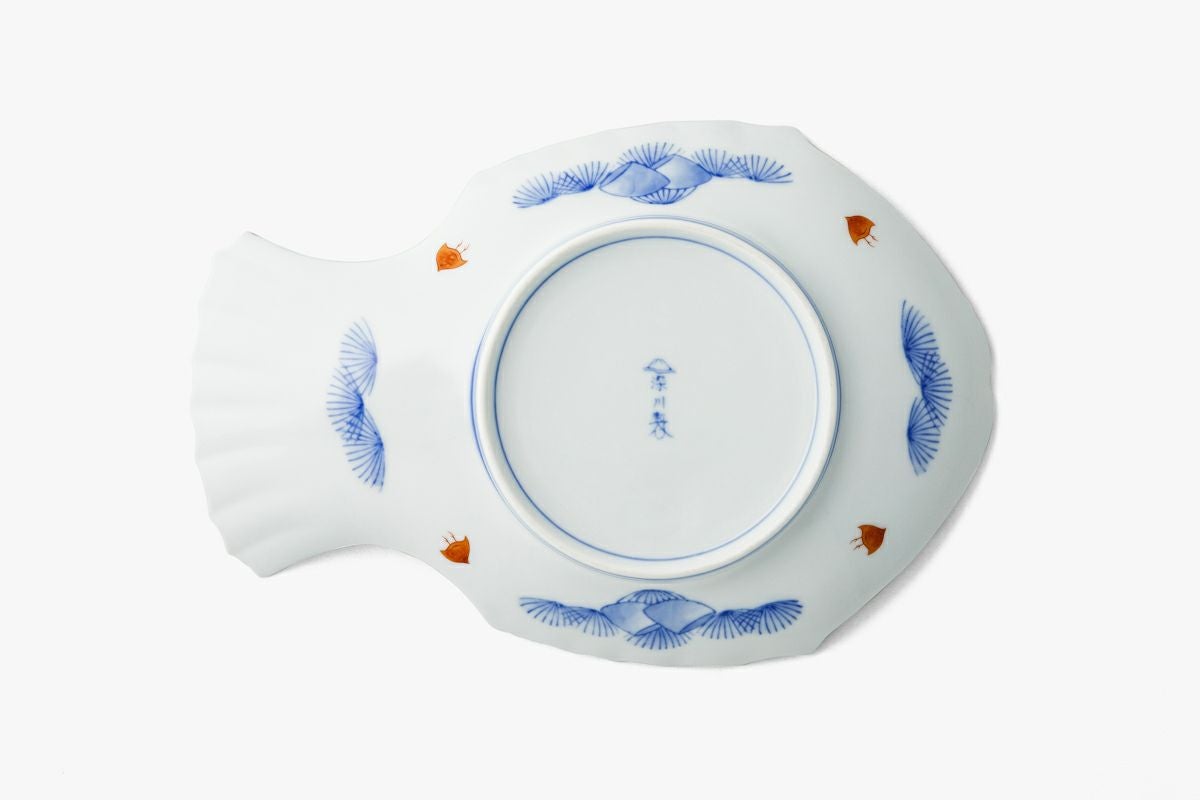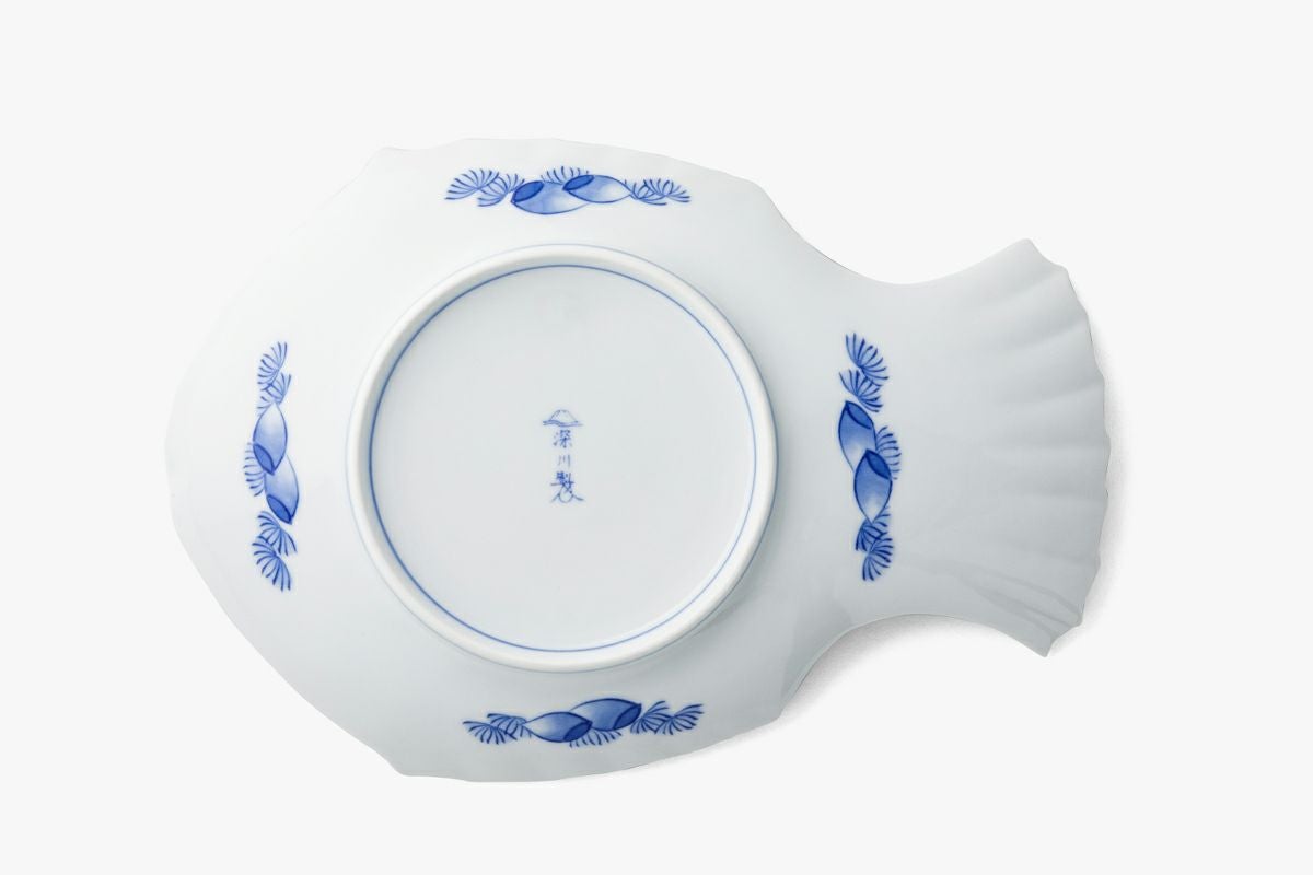 染付菊絵 魚型皿