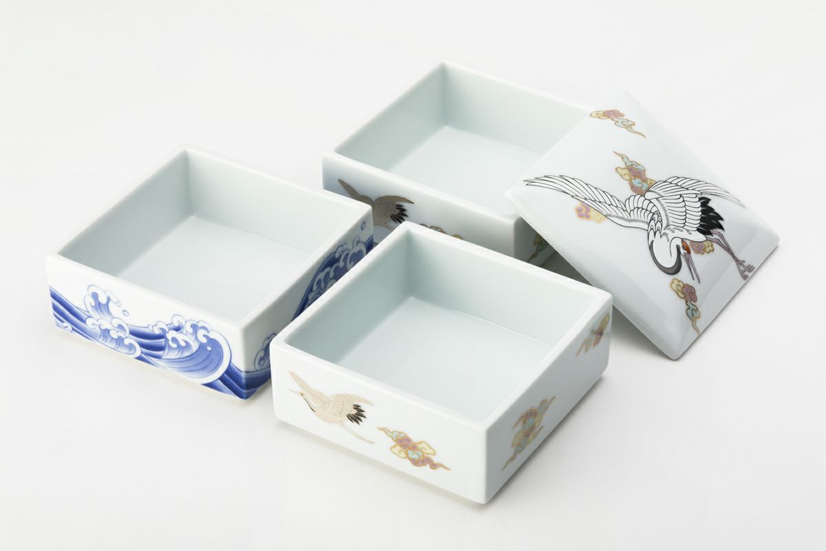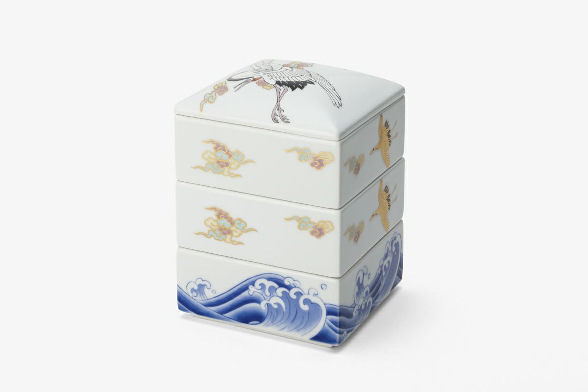 白金波鶴紋 三段重