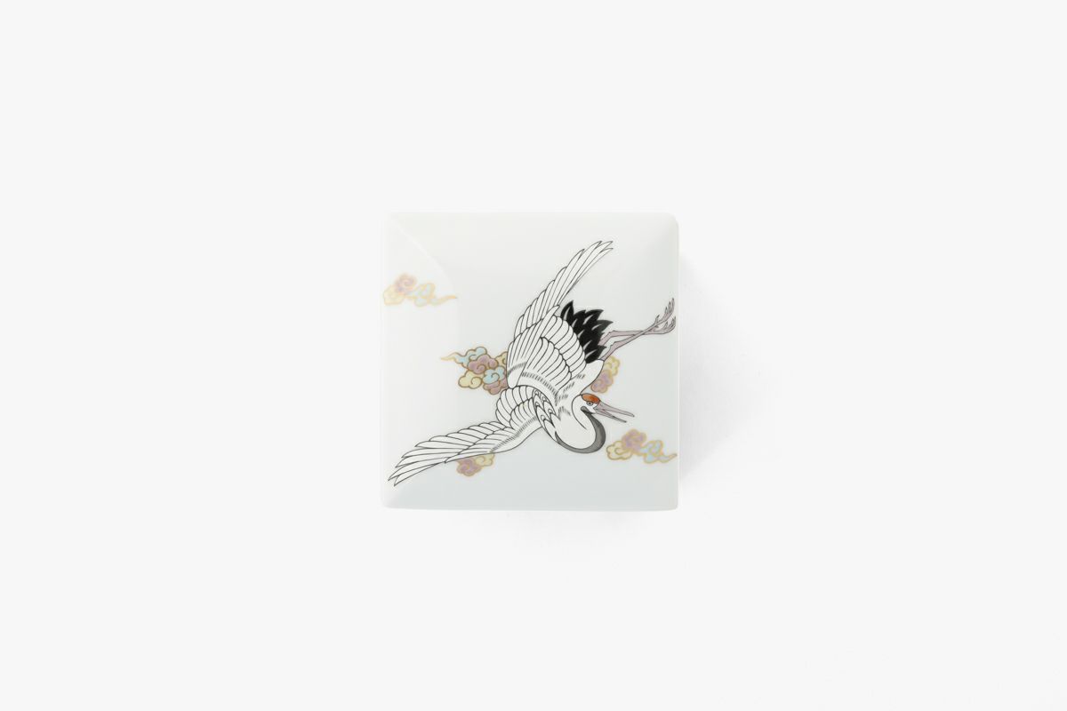 白鶴紋様 三角小皿