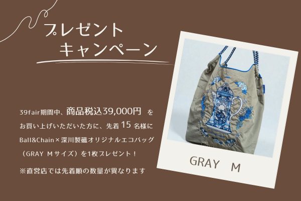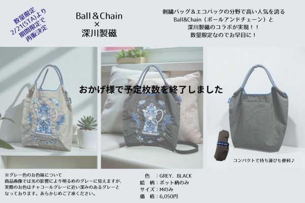 ② 期間中、税込39,000円以上お買い上げの方に大人気!Ball&Chain×深川製磁オリジナルコラボバッグをプレゼント!