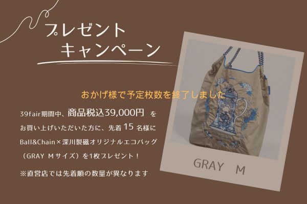 ② 期間中、税込39,000円以上お買い上げの方に大人気!Ball&Chain×深川製磁オリジナルコラボバッグをプレゼント!