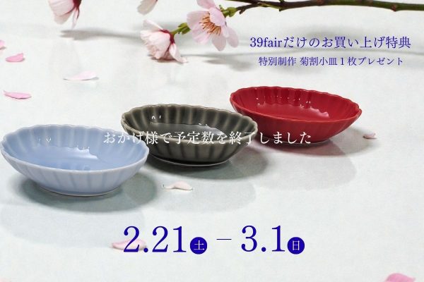 ① 期間中、税込16,500円以上、商品をお買い上げの方に小皿プレゼント!(税込39,000円以上の場合、小皿は付きません)